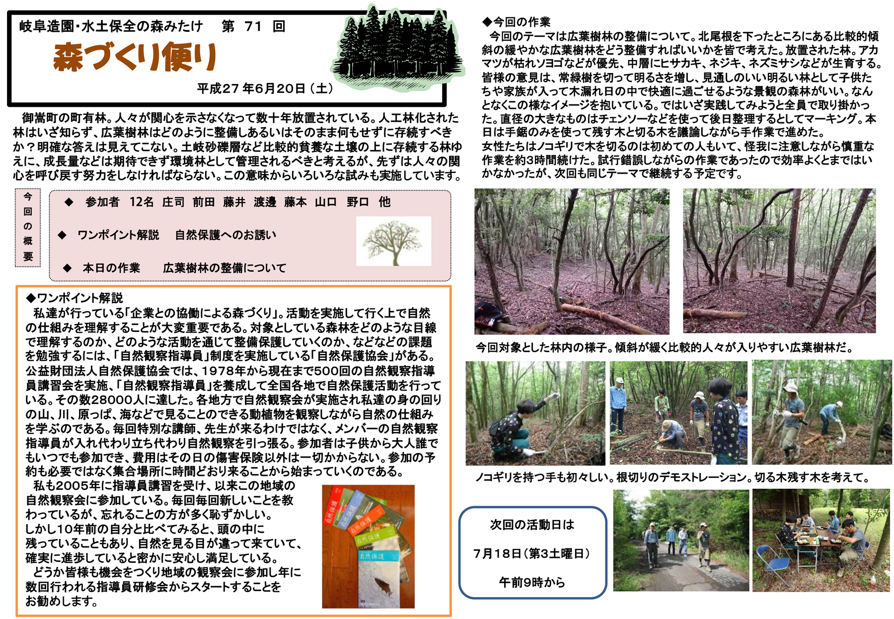 第71回森づくり便り