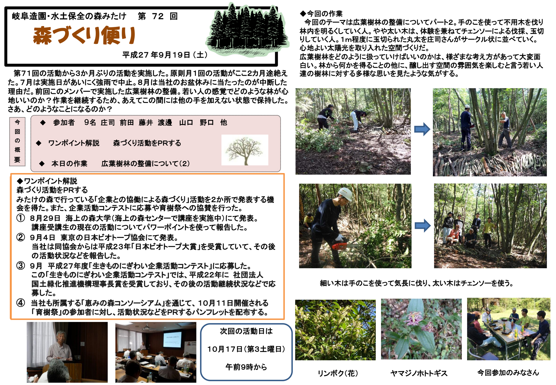第72回森づくり便り